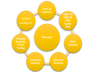 The demands placed on VAR and other similar techniques have grown tremendously, driven by new products such as power-reverse dual currency swaps, swaps whose notional value amortizes unpredictably, and dozens of other such innovations. To keep up, the tools have evolved. One of such tools is Riskrator. Riskrator is a proprietary tool developed by us for markets to do a complete deep-dive for the risk. It can be considered as one stop solution for all your risk related operations.